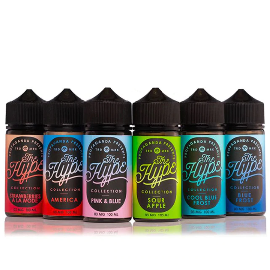 THE HYPE COLLECTION AMERICA 3MG , THE HYPE COLLECTION AMERICA 6MG , THE HYPE COLLECTION BLUE FROST 3MG , THE HYPE COLLECTION BLUE FROST 6MG , THE HYPE COLLECTION PINK BLUE 3MG , THE HYPE COLLECTION PINK BLUE 6MG , THE HYPE COLLECTION SOUR APPLE 3MG , THE HYPE COLLECTION SOUR APPLE 6MG |